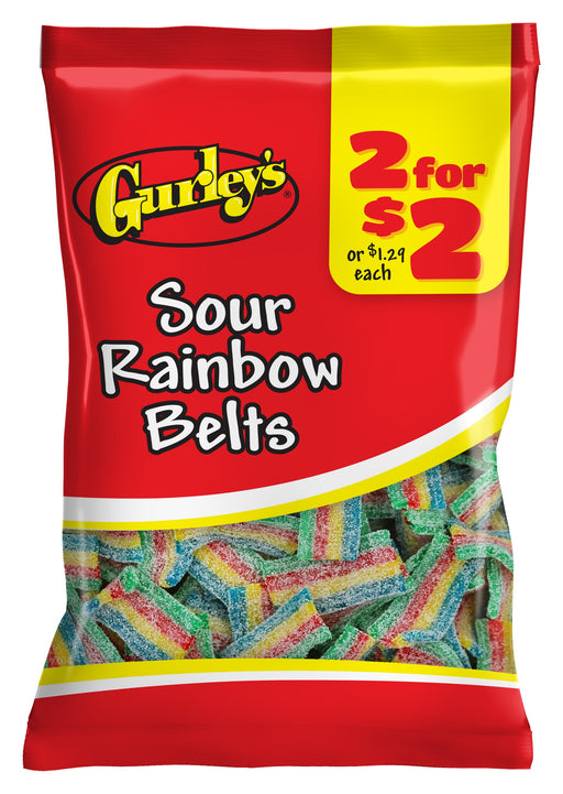 Taste the Rainbow of Sweet & Sour Delight! Gurley 2/$2 Rainbow Belts Sour 12 Per Bag offers a burst of tangy excitement in every bite. Perfect ...
