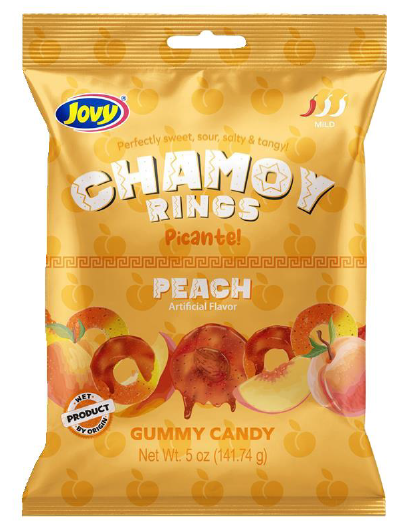 View full detailsJovy Chamoy Picante Spicy Gummy Peach Rings Peg Bags 5 oz 8ct