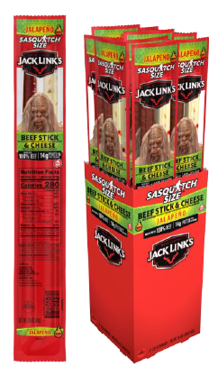 Jack Link's Sasquatch Size JalapeβΒ±o and Cheese combines the heat of jalapeβΒ±os with the creaminess of cheese in a satisfying, protein-rich snack.