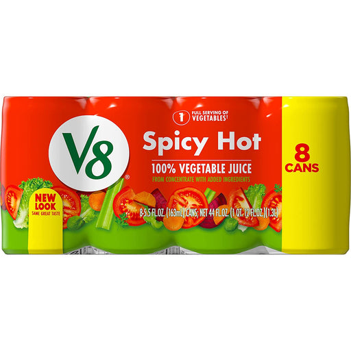 V8 Spicy Hot 100% Vegetable Juice. A spicy blend of 8 vegetables, providing a uniquely satisfying taste and an excellent source of antioxidant vita...