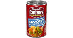 Tackle hunger with Campbell's Chunky Savory Vegetables Soup. Eating your veggies becomes undeniably satisfying with our hearty spoonfuls loaded with potatoes, carrots, corn, green beans and peas in a flavorful tomato broth. Soup that eats like a meal.