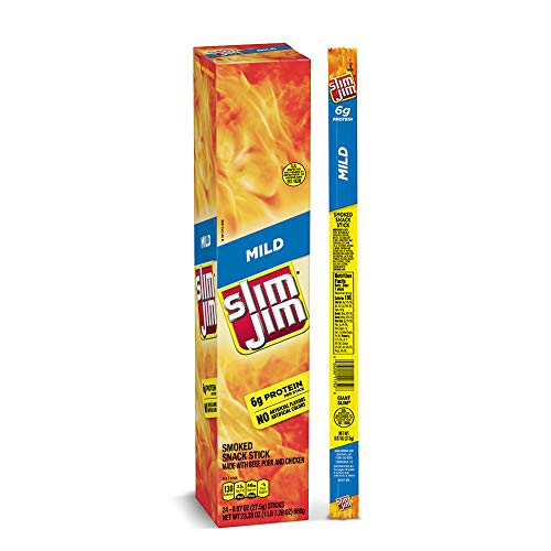 Product Description When it comes to snack foods, they say size matters. That?s why Slim Jim Giant Mild Flavor Smoked Meat Stick has a big, meaty f...
